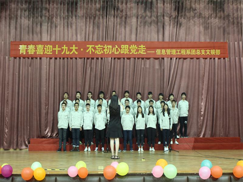 2017年5月11日,由信息管理工程系团总支文娱部举办的“青春喜迎十九大·不忘初心跟党走合唱”比赛在学校体院馆举行,在各班级和老师的积极踊跃的参与下取得完美成功。