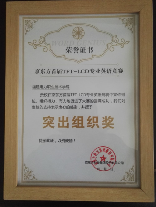 2月23日,京东方首届全英语竞赛在京东方北京总部进行,由二十名来自全国各地的选手进行决赛,我院学子任浠雯喜获三等奖,学院荣获突出组织奖。